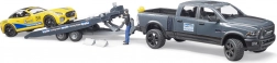 Deze realistische set van BRUDER combineert een robuuste RAM terreinpick-up met transportaanhanger en een gele sportwagen met afneembaar dak. Inclusief chauffeurfiguurtje, zodat je meteen kunt racen of de auto naar het circuit kunt vervoeren. De precieze afwerking, functionele elementen en duurzame kunststof zorgen voor een lange levensduur en geweldig speelplezier.