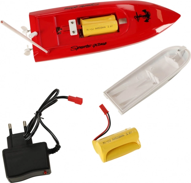 In de verpakking zit alles wat nodig is om te starten: de boot, afstandsbediening, netlader, accu en antenne. De zender ligt prettig in de hand en vereist voor gebruik 2× AA 1,5 V batterijen (niet inbegrepen). De compacte afmetingen 24 × 8 × 7,5 cm maken dragen en opbergen eenvoudig.