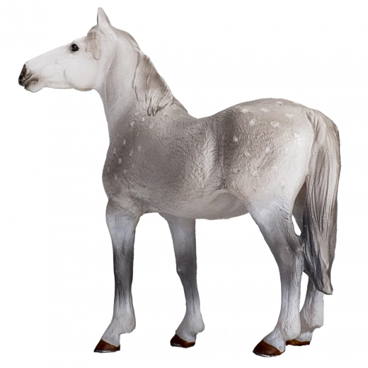 Deze Orlovske draver-figuur valt op door de zorgvuldige modellering en het realistische uiterlijk, dat de echte kenmerken van het ras getrouw weergeeft. Dankzij het kwalitatieve materiaal is hij geschikt voor dagelijks spelen en als decoratief verzamelstuk.