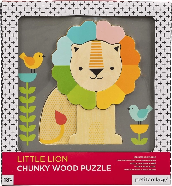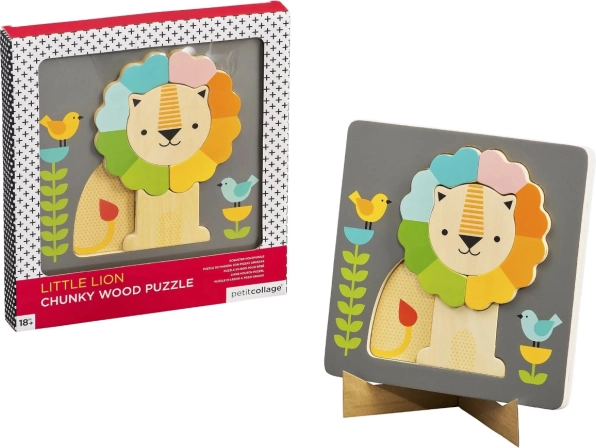 Bouw een vriendelijke leeuw met een vrolijke regenboogmanen met deze houten puzzel van Petit Collage! Geweldig voor jonge kinderen: met vijf stevige houten stukken maak je eenvoudig een kleurrijke leeuwenvriend.