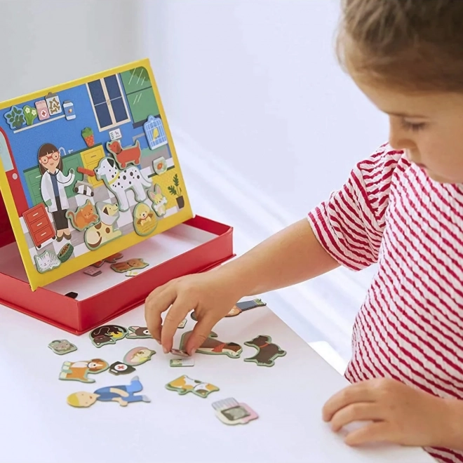 Magnetisch spel van Petit Collage met het thema dierenkliniek biedt kinderen een geweldige kans voor creatief spel. Bevat 50 magnetische stukken en twee spelscènes die onbeperkt plezier en educatie mogelijk maken.