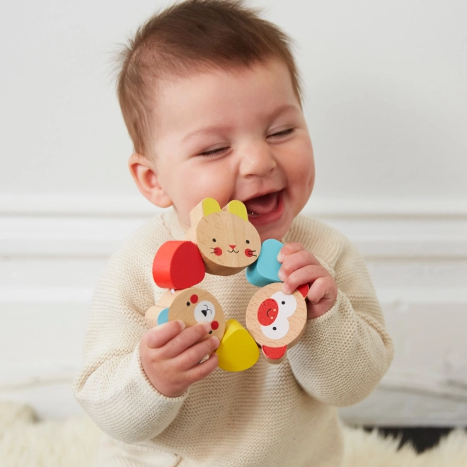 De houten bijtring is ontworpen voor kleine handjes die graag veilig verschillende texturen en vormen ontdekken. Hij is perfect tijdens de doorbraak van de eerste tandjes dankzij de natuurlijke materialen en waterverdunbare verven, wat veilig gebruik garandeert.