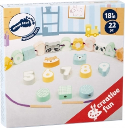 Deze hoogwaardige houten set van SMALL FOOT laat kinderen spelenderwijs cijfers en vormen ontdekken. Pasteltinten en prettige vormen nodigen uit tot spel, terwijl het praktische koord met houten uiteinde kleine handjes helpt de afzonderlijke onderdelen eenvoudig te rijgen. De set is ideaal voor het eerste leren van de cijfers 0–9 en de ontwikkeling van geduld, concentratie en logisch denken.
