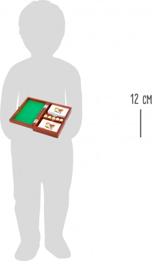 De elegante houten box van Small Foot bevat 2 kaartspellen van 54 kaarten en 5 dobbelstenen – alles voor snelle spelpret thuis en onderweg. Dankzij de groene onderlegger om te werpen, de veilige metalen sluiting en de compacte afmetingen is de set ideaal voor kinderen vanaf 6 jaar én volwassenen. Speel Mau-Mau (Pesten), skat, doppelkopf en andere favorieten.