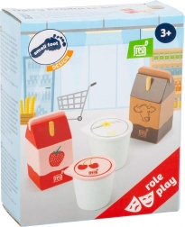 Kinderen zullen dol zijn op de aardbeien- en chocolademelk met rietjes en de twee yoghurtbekers – vanille en kers. De set stimuleert op een natuurlijke manier de fijne motoriek, communicatie en sociale vaardigheden door leuk winkel- of kookspel.