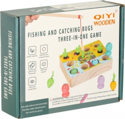 Neem je kind mee naar de vijver én de moestuin – zonder het huis te verlaten. De massiefhouten basis heeft openingen voor visjes, wormpjes en kleurrijke worteltjes. Kinderen vangen ze met de magnetische hengel of trekken ze eruit aan de vilten blaadjes, waarmee ze spelenderwijs hun greep en vingertast oefenen.