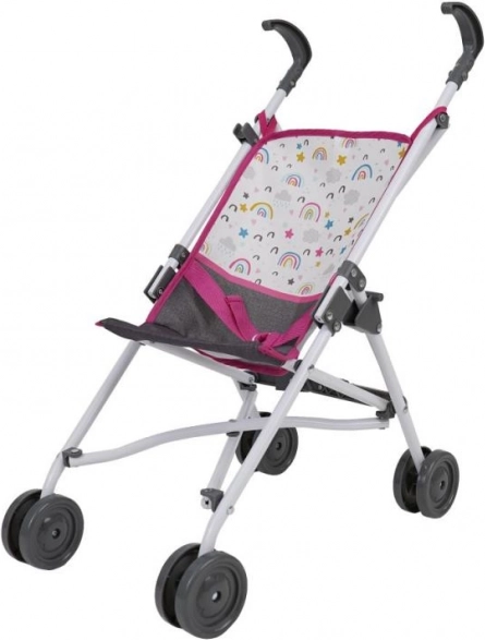 Deze opvouwbare poppenbuggy in paraplustijl is een uitstekende keuze voor dagelijks spelen, zowel binnen als buiten. Het regenboogdesign geeft het speelgoed een vrolijke uitstraling en prikkelt de fantasie, terwijl de praktische afmetingen zorgen voor eenvoudig manoeuvreren door kleinere kinderen.