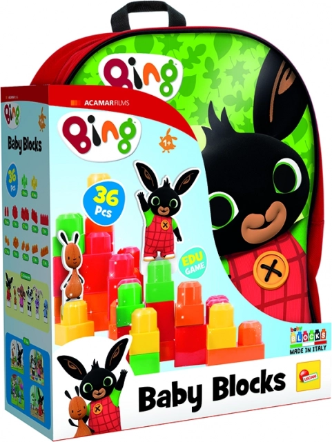 Ontdek de speelse bouwset met Bing-thema in een praktische rugzak. De set bevat 32 stukjes en kartonnen zelfcorrigerende elementen die in de blokken met speciale uitsteeksels kunnen worden geschoven – ideaal voor de ontwikkeling van fijne motoriek, logisch denken en creativiteit bij kinderen.