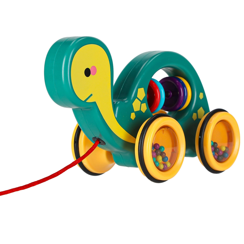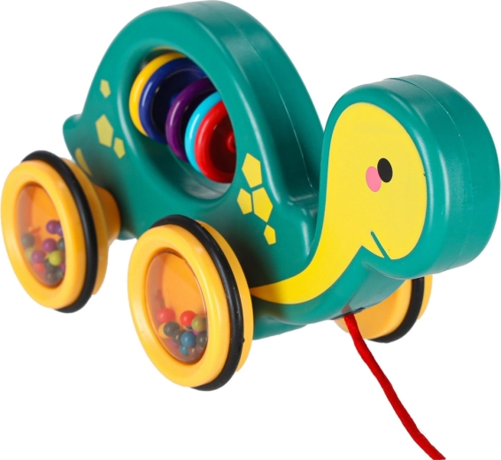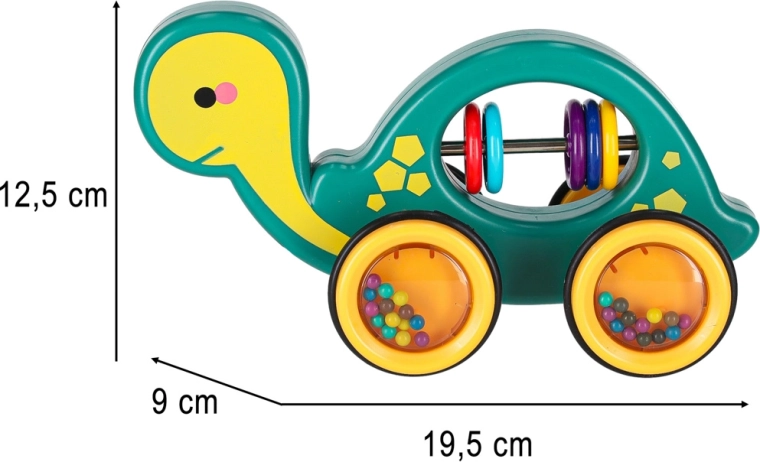 Dit vrolijke trekschildpadje is een perfecte maatje voor thuis en onderweg. Dankzij het koord kan het kind het eenvoudig voorttrekken, terwijl de transparante wieltjes met gekleurde kraaltjes prettig rammelen en tot bewegen motiveren. Het speelgoed ondersteunt de ontwikkeling van grove en fijne motoriek en de oog-handcoördinatie en het begrijpen van oorzaak en gevolg.