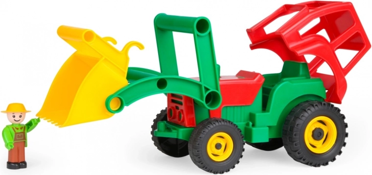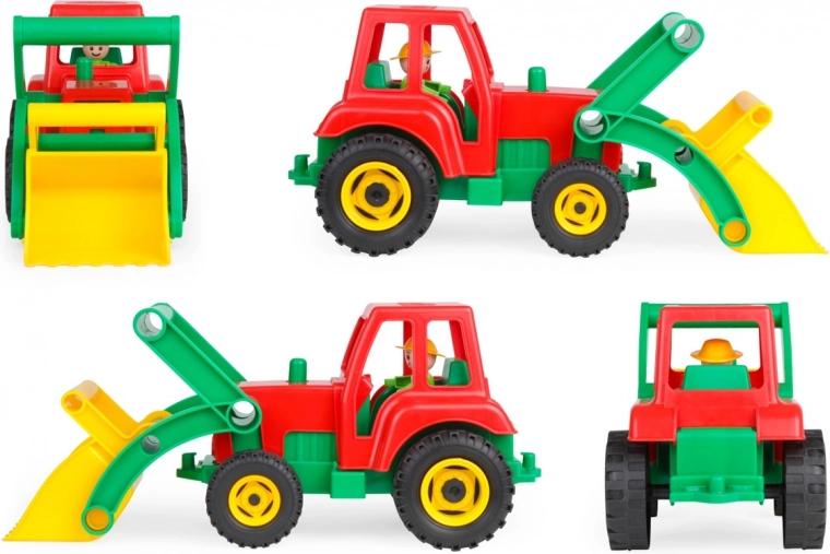 Ontdek de robuuste kindertractor met laadbak, ideaal om thuis en in de tuin mee te spelen. Dankzij de stevige constructie en het kwaliteitskunststof is hij geschikt voor spelen in het zand, op het erf en in de kinderkamer. De voorlader is eenvoudig te bedienen en stimuleert de fijne motoriek en de verbeelding.