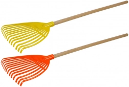 Lichte en duurzame kinderhark LENA met een lengte van 60 cm, ideaal voor kleine tuiniers. Dankzij de combinatie van een kunststof kop en een houten handvat ligt hij prettig in de hand, werkt hij gemakkelijk en is hij perfect voor het harken van bladeren en het voorbereiden van perkjes. Bevordert fijne motoriek, balans en verbondenheid met de natuur.