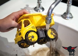 Het speelgoed bootst grote bouwvoertuigen na en trekt met zijn heldergele kleur de aandacht van elke kleine bouwer.