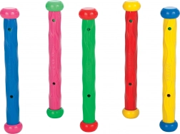 De set bevat 5 stuks duurzame stokjes van 30 cm lang met een rubberen body en kunststof uiteinden. Ideaal voor in het zwembad voor kinderen vanaf 6 jaar – om duiken, adem inhouden en zekerheid in het water te trainen.