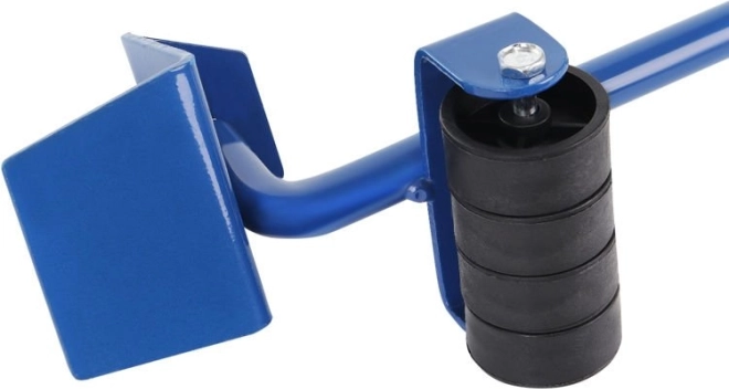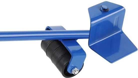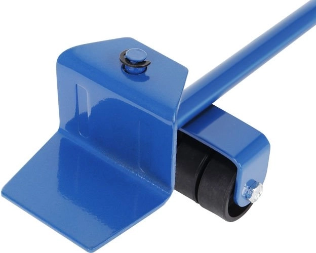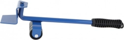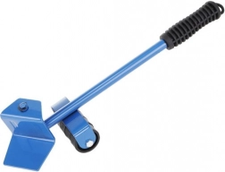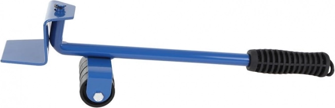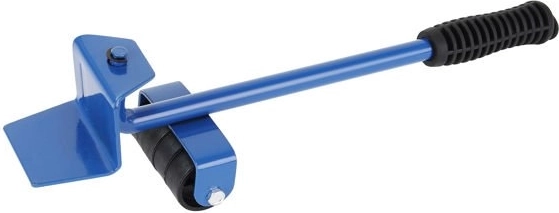 Metalen hefboom met comfortabele rubberen handgreep en steunwieltje vermindert de inspanning bij het optillen van zware meubelstukken aanzienlijk.
