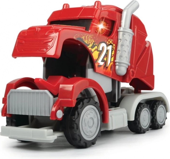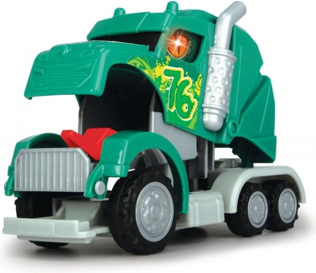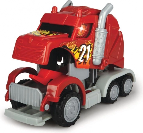 De cabine van de trekker verandert in een oogwenk in een draak. Trekken met terugtrekmechanisme, met geluidseffect en knipperend licht. 3 soorten – rood, blauw of groen. Afmeting: 12,5 cm.