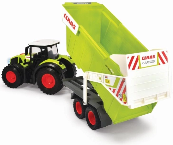Tractor met vrijloop, interieur, kiepaanhanger, licht- en geluidseffecten, bewegende onderdelen. Lengte 64 cm.