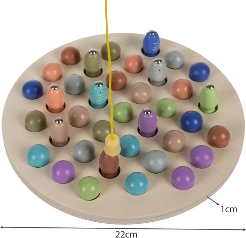 Dit houten magnetische hengelspel is een uitstekende keuze voor de ontwikkeling van kinderlijke vaardigheden. Kinderen vangen kleurrijke visjes met de magnetische hengel, sorteren knikkers en oefenen het hanteren van pincet en stokjes. Het ondersteunt logisch denken, geheugen en vaardigheid, en zorgt tegelijk voor veel plezier.