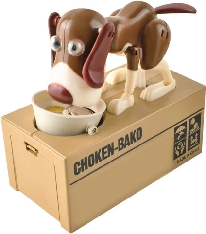 Na het inwerpen van een muntje komt het hondje tot leven – het beweegt en maakt geluid, waardoor het de munt “inslikt” in het reservoir.