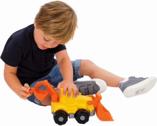 Deze duurzame kunststof bouwgraafmachine is de perfecte keuze voor kleine bouwers. Beweegbare voorblad en achtergraaf stellen kinderen in staat verschillende scènes te creëren in de zandbak of op het strand. Geschikt niet alleen voor buitenspelen, maar ook voor binnen.