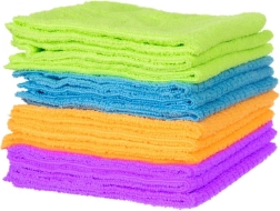 Eén doek voor stof, een andere voor ramen, nog een voor de badkamer. Gebruik ze naar behoefte droog voor stof of nat voor grondige reiniging.