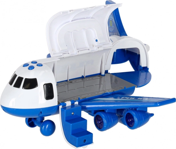 Binnenin het vliegtuig berg je 3 politievoertuigen en een set van 7 borden op, die kinderen helpen de verkeersregels en het werk van hulpdiensten te begrijpen. Het vliegtuig heeft een praktisch handvat voor dragen, afneembare vleugels om ruimte te besparen en soepel rollende wieltjes voor actievolle landingen.