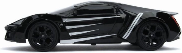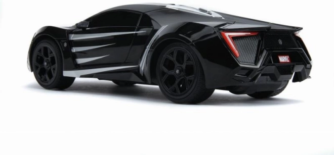 Geniet van een actievolle rit met de Lykan HyperSport RC-auto in Black Panther design. De zwarte sportieve uitvoering met zilveren details en MARVEL-logo’s springt direct in het oog, terwijl de stabiele besturing op 2,4 GHz zorgt voor soepel manoeuvreren zonder storing.