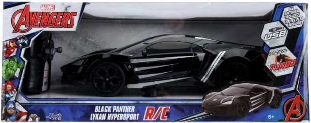 Stijlvolle RC-auto geïnspireerd door held Black Panther brengt snelle fun voor kinderen en MARVEL-fans. In schaal 1:16 met 2,4 GHz besturing, Turbo-functie, rijden vooruit/achteruit en links/rechts. Dankzij USB-opladen en batterijen in de verpakking is hij direct na het uitpakken klaar voor gebruik. Maximale snelheid 9 km/u, model lengte 29 cm.