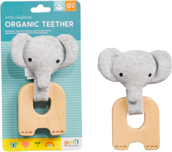 Petit Collage Bijtspeeltje olifant biedt kinderen een veilige en milieuvriendelijke manier om te vermaken en kalmeren. Het combineert organisch katoen en FSC-gecertificeerd hout voor het garanderen van veiligheid en comfort.