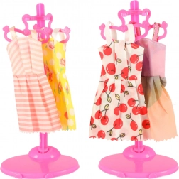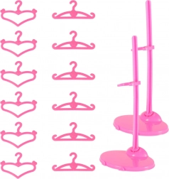 De set bevat kleerhangers en standaarden, waarmee je gemakkelijk de kleding van de poppen op één plek kunt ordenen.