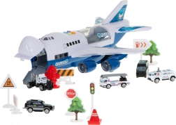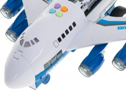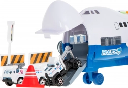 Dankzij het ruime dek kan het vliegtuig tot 6 politieauto's vervoeren. Geïntegreerde LED-verlichting van de motoren verhoogt de aantrekkelijkheid van het spel.