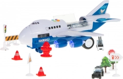 Dit politie vliegtuig is de perfecte tool voor kleine kinderen die van actievol spelen met voertuigen houden. LED-lampen op de motoren voegen realisme aan het spel toe, terwijl de uitklapbare helling auto's gemakkelijk in en uit laat rijden.