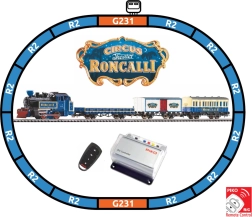 Deze complete treinset bevat alles voor direct rijden: stoomlocomotief, personenrijtuig, gesloten en open goederenwagen, ovaal rails met bedding en voeding met draadloze analoge controller. De trein in het aantrekkelijke RONCALLI-design overtuigt met een realistische uitstraling en betrouwbare loop.