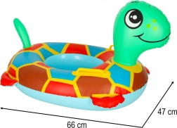 Het opblaasbare schildpadzitje is een geweldige hulp voor de eerste waterpret. Dankzij de twee beenopeningen zit het kind stabiel, terwijl het kleurrijke ontwerp en de lachende schildpadkop uitnodigen tot spel. Duurzaam PVC zorgt voor een lange levensduur en gemakkelijk onderhoud.