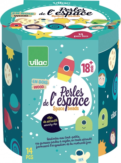 Prachtige ruimte rijgspeelgoed, geweldig voor de ontwikkeling van fijne motoriek bij kinderen. Bevat 14 prachtig geïllustreerde houten kralen zoals astronaut, maan, zon en raket.
