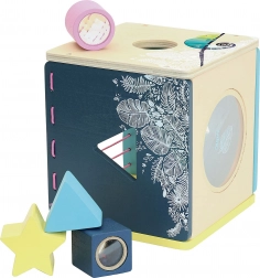 Kinderen kunnen verschillende vormen in de bijbehorende openingen plaatsen, wat hun fijne motoriek en ruimtelijk inzicht ontwikkelt.