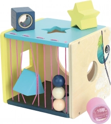 De kubus heeft een modern en origineel design met nieuwe speelelementen in de vorm van zintuiglijke blokjes en elastische koordjes. Binnenin vind je extra kralen die kinderen zowel plezier als leermomenten bieden. Dit product is een uitstekende keuze voor elk speels kind.