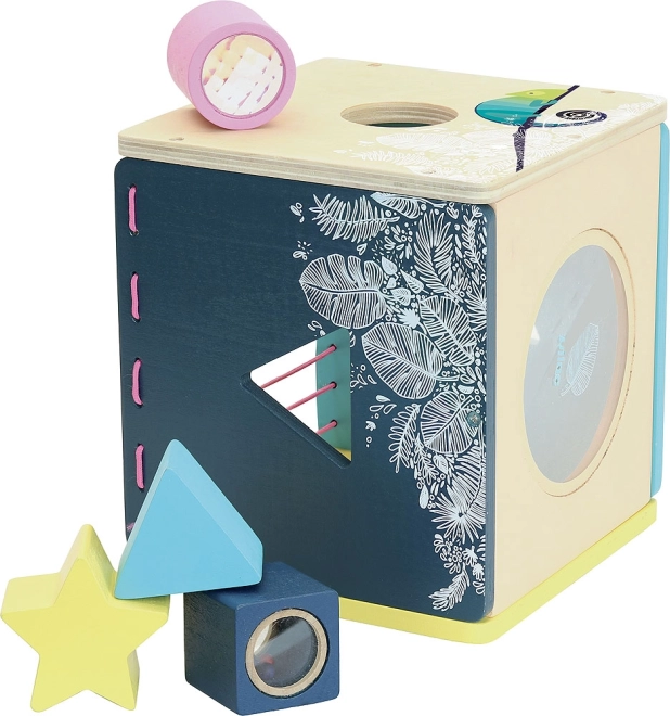 De motorische kubus is ontworpen om kinderen te boeien met een modern en origineel design. Dit geweldige speelgoed ondersteunt:
