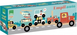 Kinderen kunnen de taxi, politie, brandweer, ambulance, helikopter en minibus vervoeren, sorteren en plaatsen. Perfect om de rollen van voertuigen in de stad te leren kennen.