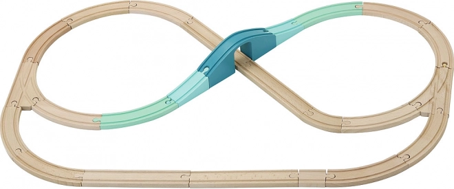 De rails passen op de meeste houten treinbanen. De trein koppelt eenvoudig met magneten, wat een soepele rit garandeert.