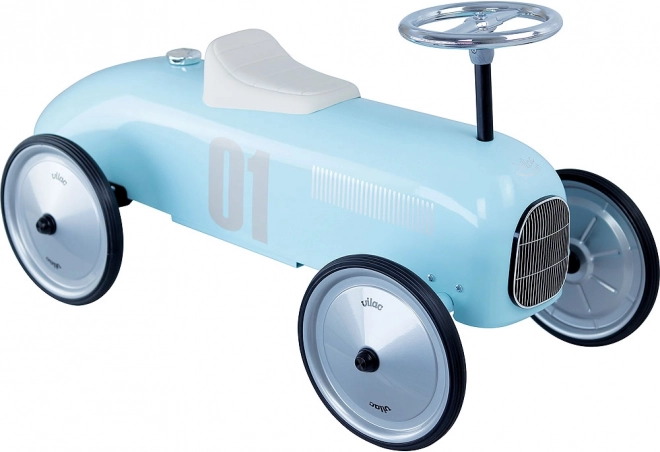 Ontdek de charme van klassieke raceauto’s in kinderformaat. Deze lichtblauwe metalen loopauto, geïnspireerd op oldtimers, combineert tijdloos design met veilig en comfortabel gebruik. De met rubber beklede wielen zorgen voor een stille loop, ook op harde ondergrond, terwijl het stuur het draaien van de voorwielen regelt voor natuurlijk sturen.