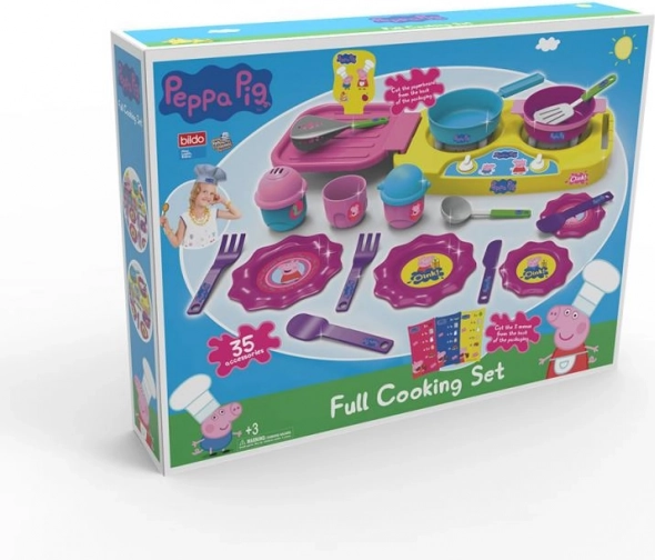 Kunststof serviesset met het motief van VARKENTJE PEPPA biedt kinderen een leuk kookrollenspel. In de verpakking vind je 35 onderdelen, waaronder een kookplaat, pannen, borden, kopjes en bestek. Licht, duurzaam en gemakkelijk schoon te maken ontwerp.