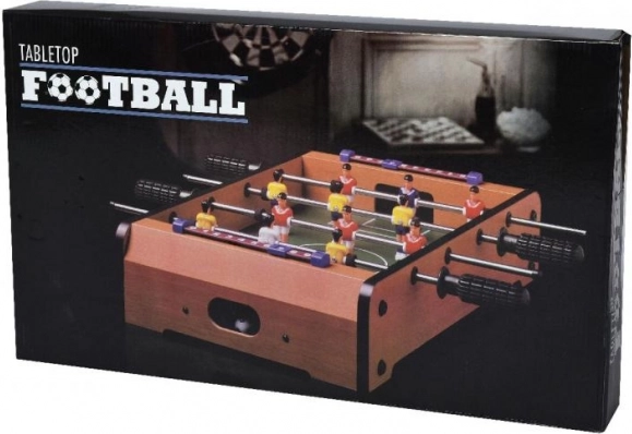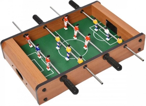 Deze kleinere tafelvoetbal is de ideale keuze voor alle voetballiefhebbers die thuis plezier willen hebben. Het is geconstrueerd van gekleurd en gelakt hout, wat zijn lange levensduur garandeert. Elk team heeft 6 spelers gepositioneerd op twee stangen die eenvoudig bediening en simulatie van een echte voetbalwedstrijd mogelijk maken.