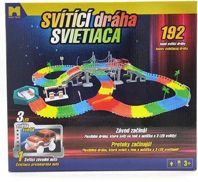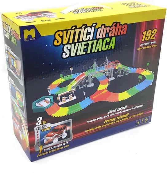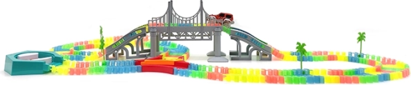 Bouw je eigen racecircuit van 192 kleurrijke onderdelen en geniet van ritten met het LED-autootje dat elke bocht verlicht. De delen zijn flexibel en klikken gemakkelijk vast, zodat kinderen snel de vorm en lengte van de baan kunnen veranderen en kunnen experimenteren met bruggen, bochten en afdalingen.
