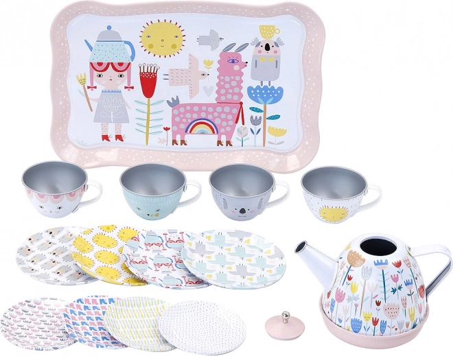 Alles is netjes opgeborgen in een stevige koffer, zodat kinderen hun theepartijtje overal mee naartoe kunnen nemen – op bezoek, in de tuin of tijdens een picknick. De complete 14-delige metalen set bevat alles wat nodig is voor betoverende theekransjes.