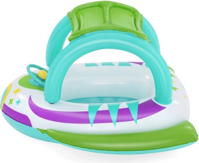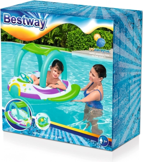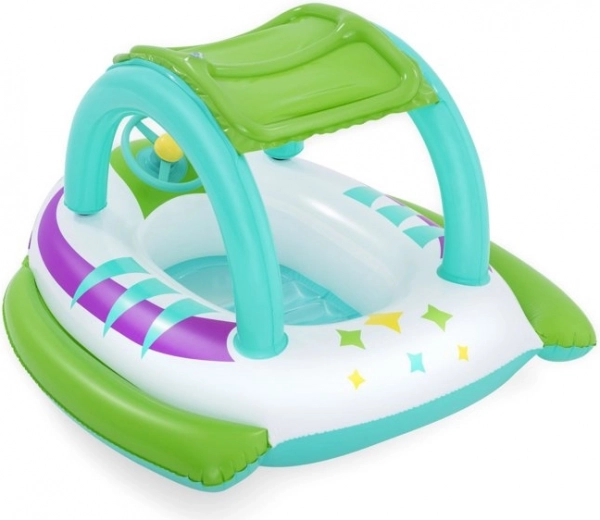 De leuke opblaasbare boot BESTWAY Space Splash voor kinderen vanaf 3 jaar biedt veilig speelplezier in het water, een afneembaar zonnescherm met UV‑bescherming, een opblaasbare bodem met peek‑a‑boo‑raampje en een stuur met toeter. Het stijlvolle “ruimte”-design en de comfortabele handgrepen zorgen voor uren plezier in het zwembad, bij het meer en aan zee.