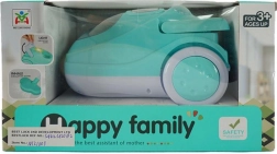 Stofzuiger in een moderne kleur, die licht geeft en een zuigsimulatie heeft. Afmetingen 28x17x16 cm.