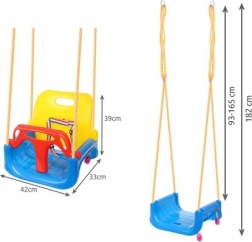 Eenvoudige en snelle montage van de schommel maakt gebruik zowel binnen als buiten mogelijk. Sterke touwen met verstelbare lengte passen de hoogte van de schommel aan naar behoefte.