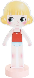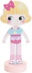 De stijlvolle ontwerpster Mia wacht tot jij haar de mooiste outfit geeft. Met de robuuste houten figuur op een stabiele standaard en magnetische onderdelen kunnen kinderen eenvoudig jurken, schoenen en accessoires combineren en zo eindeloos veel modieuze sets creëren.