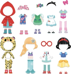 Jurken, schoenen, hoeden en accessoires – de magnetische onderdelen klik je in een handomdraai vast en wissel je zo om. Kinderen oefenen hun fijne motoriek en creativiteit.