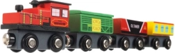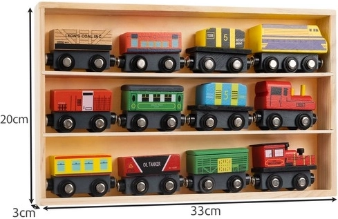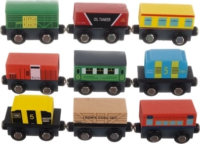 De set bevat 3 locomotieven en 9 wagons in verschillende kleuren, wat voor gevarieerd amusement zorgt.